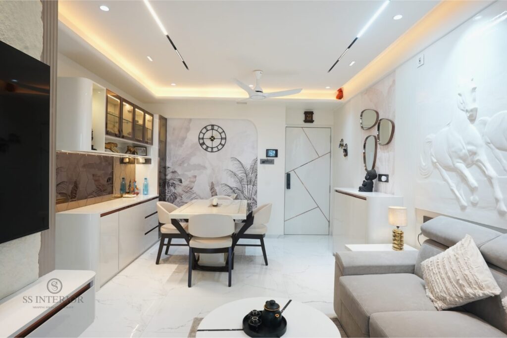 We also design well-planned dining areas with elegant seating, crockery units, and decorative lighting that add warmth and sophistication to your home. At SS Interior, every design is tailored to reflect your lifestyle, taste, and space requirements while maintaining high-quality standards and attention to detail.